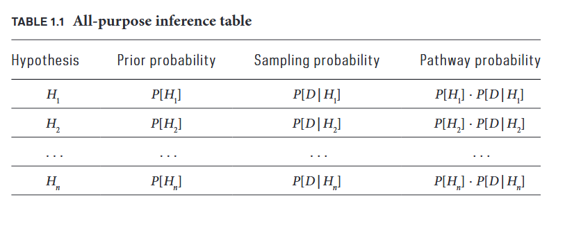 图1: 所有猜想都有一定可能通向证据,pathway probabilities衡量了该道路的宽阔程度,也最终决定了后延概率的大小。